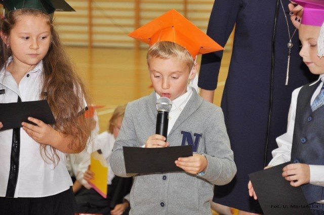 Były też chwile wzruszeń i niejedna łza w oku, gdy Kacper Biały (Ia), Julia Pudełko (Ib), Ryszard Zapisek (Ic), Jakub Szczepański (Id), Maja Borawska (Ie) i Lena Krasnodębska (If) przeczytali swoje prośby zawarte w „Liście Pierwszoklasisty do rodziców”.