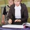 A potem, kiedy każdy już usłyszał - „pasuję Cię na ucznia” i został dotknięty „magicznym piórem”- odetchnęło z ulgą serce pierwszaka. Ślubujący uczeń z rodzicem i wychowawcą złożyli pamiątkowe podpisy w Kronice Szkoły. Zadość tradycji uczynili również zaproszeni goście, a Wicedyrektor Szkoły Joanna Krzyżak odczytała Akt Nominacji…