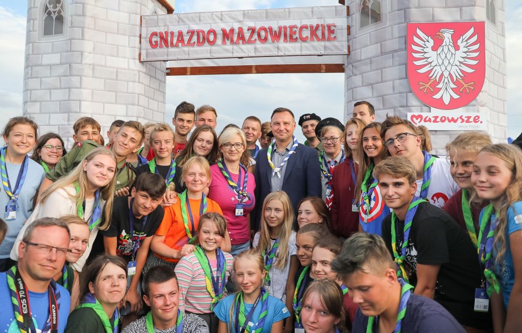 Były także momenty  nas zaskakujące i niespodziewane wizyty. Na Zlot zawitał  np.  Prezydent RP Andrzej Duda, który odwiedził wszystkie Chorągwie. Oczywiście Chorągiew Mazowiecka  też przywitała Pana Prezydenta przy swojej ładnej bramie.