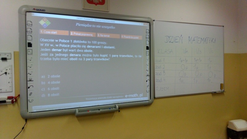 13 marca br., społeczność „Dużej Jedynki” obchodziła po raz kolejny Dzień Matematyki. Dzięki współpracy ze Stowarzyszeniem Doskonalenia i Rozwoju 4improve zorganizowano turniej międzyklasowy pt.: „Pieniądze to nie wszystko”. W tym roku szkolnym patronat nad Ogólnopolskim Dniem Matematyki objął Minister Edukacji Narodowej. Reprezentanci klas zmierzyli się z zestawem interaktywnych zadań w formie testu wielokrotnego wyboru. Wśród 24 zadań były zadania łączące wiedzę matematyczną z wiedzą z innych przedmiotów np. z języka polskiego, historii czy przyrody. Zabawa była przednia, wszyscy bawili się matematyką wyśmienicie. Zwycięskie drużyny to VIb, Va i IVa.
