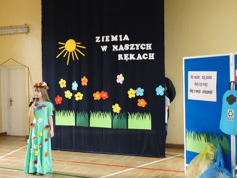 22 kwietnia br. obchodziliśmy w naszej szkole Dzień Ziemi. Z tej okazji uczniowie klasy IVb wraz z nauczycielką przyrody i zarazem wychowawczynią, p. Agnieszką Tułowiecką, przygotowali apel dla uczniów klas IV - VI. Na początek zaprezentowali inscenizację, w której zwrócili uwagę, że kondycja naszej planety nie jest dobra - podwórka i lasy są zaśmiecone, powietrze zapylone, a rzeki brudne. Na taką sytuację należy reagować. I tu młodzi aktorzy przypomnieli swoim rówieśnikom, że pewne działania mogą podjąć nawet dzieci. Pierwszym krokiem do czystszego środowiska jest zadbanie o czystość swojego otoczenia, a kolejnym - ograniczenie ilości odpadów poprzez segregację śmieci. To proste: do worka niebieskiego wrzucamy papier, do zielonego - szkło, a do żółtego - plastik. Gdy podwórko zostało posprzątane a śmieci posegregowane, świat wypiękniał i Ziemia poczuła się znacznie lepiej. W roli Pani Ziemi wystąpiła Sylwia Łach, Doktora - Bartek Żach, Chłopców - Dawid Śniadała i Piotr Pęksa, Dziewczynek - Julia Duda, Oliwia Jastrzębska, Zuzia Nietubyć i Natalia Staniszewska. W recytacji - Gabrysia Jastrzębska i Oliwia Wyszomierska. Przedstawienie uświetniły piosenką pt.: "Moja planeta" uczennice klas VIc i VIb: Amelia Andryszczyk, Roksana Ruszkowska i Ala Michalik.
