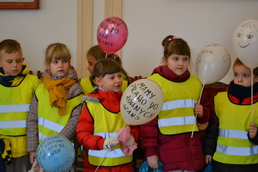 Z tej okazji dzieci z Miejskiego Przedszkola Nr 2 wraz ze swoimi opiekunami spotkały się z burmistrzem Jerzym Bauerem w Ratuszu 21 listopada, by radośnie mówić o swoich prawach. Na pamiątkę przekazały własnoręcznie wykonaną kronikę, w której dokładnie opisały i zobrazowały to, co się im należy. Dziękując za wizytę Burmistrz przekazał dzieciom słodkie upominki.