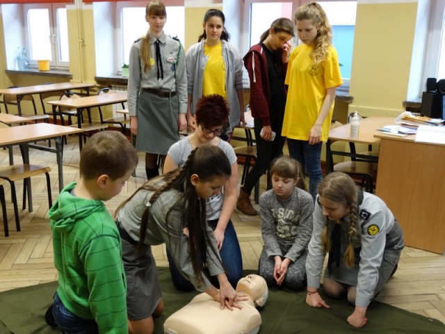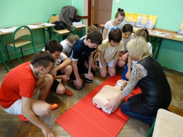 22 stycznia to zajęcia z pierwszej pomocy przedmedycznej „ Ratujemy i uczymy ratować ” prowadzone przez p. Beatę Sochocką- Lipską. Uczniowie obejrzeli film „Czy potrafisz ratować życie?” z dużą porcją instruktażu. Potem wykorzystali wszystkie wskazówki na fantomie- ćwiczyli oddechy ratownicze oraz uciskanie klatki piersiowej. Ćwiczyli też „ pozycję boczną ustaloną” i utrwalali kolejne zasady łańcucha przeżycia, powtarzając, rozmawiając i kolorując kolorowanki związane z tematem. Takiej wiedzy nigdy dość!