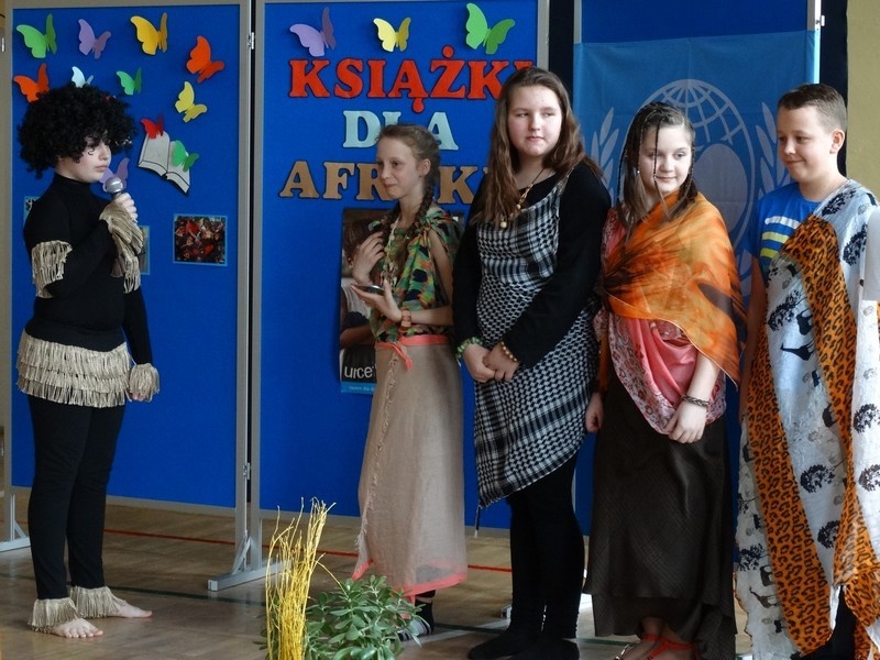 Szkoła Podstawowa nr 1 od kilku lat współpracuje z Polskim Komitetem Narodowym UNICEF, uczestnicząc w różnych akcjach edukacyjno-pomocowych. Również w tym roku społeczność szkoły niezwykle aktywnie włączyła się w działania, mające na celu pomoc afrykańskim dzieciom. Tym razem był to projekt „Mali uczniowie idą do szkoły”. Działania w placówce rozpoczęły się w październiku 2015r., kiedy to uczniowie zostali zapoznani z kwestią dostępu do edukacji na świecie i trudną sytuacją uczniów w Mali. Kolejnym ważnym krokiem w realizacji projektu było wykonanie przez chętnych uczniów książki o dowolnej tematyce. Tego zadania podjęło się 22 uczniów. Wszystkie ozdobione, zilustrowane i pokolorowane dzieła znalazły się na stoiskach szkolnego kiermaszu, który odbył się w dniach 16 – 18 marca 2016 r. Autorskim pracom towarzyszyły książki przyniesione przez uczniów i nauczycieli z domowych biblioteczek. Każdy mógł znaleźć coś ciekawego dla siebie i w zamian za przekazanie darowizny, wrócić do domu z nową, ciekawą książką. Dzięki zaangażowaniu społeczności szkolnej udało się zebrać 1100 zł. Uzyskane fundusze zostały przekazane na konto UNICEF z przeznaczeniem na edukację dzieci w Mali. Książka pt. „Leśne ludki” autorstwa Natalii Mikołajczyk i Oliwii Kanieckiej z V a reprezentuje szkołę w ogólnopolskim konkursie. „Nie możemy pomóc każdemu, ale każdy może pomóc komuś” – te słowa były myślą przewodnią uroczystego podsumowanie projektu „Mali uczniowie idą do szkoły”. Finał akcji odbył się 31 marca 2016 r. Uczniowie klasy V A pod kierunkiem Anny Kożuchowskiej przygotowali inscenizację afrykańskiej bajki. Piosenki z filmu „W pustyni i w puszczy” w wykonaniu Amelii Andryszczyk z klasy VI C wprowadziły zebranych w afrykański nastrój. Szkolny Klub UNICEF podziękował wszystkim uczniom i ich rodzicom oraz Dyrekcji i nauczycielom, za hojność i zaangażowanie w akcję. Autorzy książek z rąk Dyrektor Szkoły Doroty Ziemczyk otrzymali upominki. Nagrodzeni zostali również uczniowie biorący udział w konkursach plastycznych na projekt okładki i ilustracji do ulubionych książek. Udział w projekcie UNICEF był dobrą okazją do kształtowania wśród uczniów ostrowskiej „Jedynki” postaw społecznego zaangażowania.