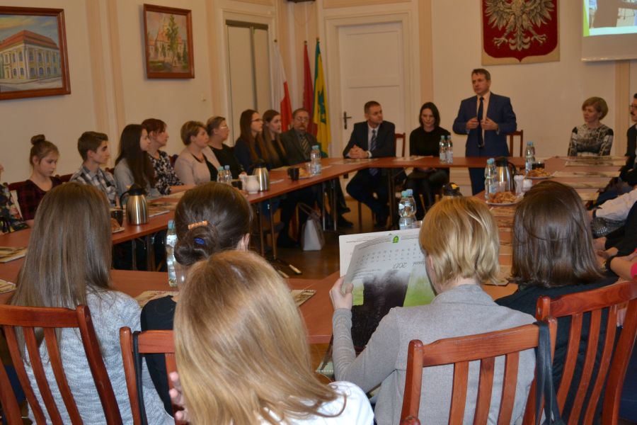 5 stycznia burmistrz Jerzy Bauer spotkał się z laureatami konkursu pokazu mody z XX-lecia międzywojennego, aby wręczyć kalendarze na 2017 rok. W spotkaniu udział wzięli także, rodzice zwycięzców konkursu, nauczyciele i dyrektorzy szkół, juror finałowej gali pokazu mody- Andrzej Mierzwiński, p.o. dyrektora Muzeum Dom Rodziny Pileckich- Dorota Socik oraz dyrektor wydziału Oświaty, Kultury i Integracji Społecznej- Dorota Ambroziak.