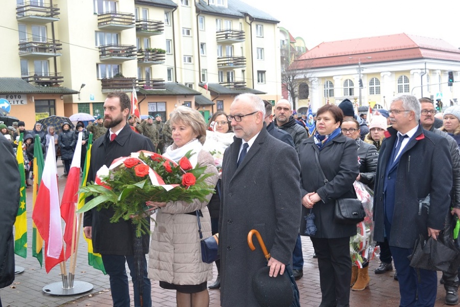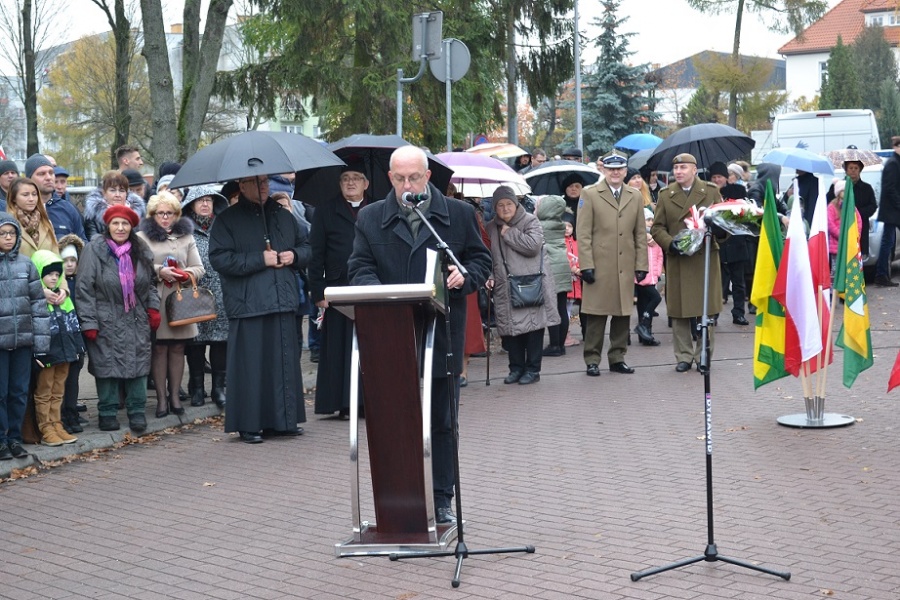Następnie głos zabrał burmistrz Jerzy Bauer. – Dzisiejszą uroczystością wchodzimy w kolejny, drugi wiek odzyskania niepodległości przez Polskę. Przenosimy się po tych stu latach do rzeczywistości, którą Opatrzność nam dała i którą musimy zagospodarować – powiedział burmistrz. Dodał również, że tak jak Ojcowie Niepodległości po roku 1918 zajęli się odbudową państwa Polskiego, tak i my teraz powinniśmy zająć się rozlicznymi zadaniami, które przyczyniają się do rozwoju naszego kraju. Burmistrz podkreślił, że to, iż 11 listopada każdego roku spotykamy się na Placu Wolności, aby celebrować Święto Narodowe, ma ogromny wpływ na tworzenie wspólnoty. Tym samym dajemy wyraz naszej odpowiedzialności za Ojczyznę oraz szacunku dla tych, którzy walczyli o wolność Polski. Zwracając się do mieszkańców burmistrz powiedział – Zapewne czeka nas jeszcze wiele wyzwań, ale przy świętowaniu należy skupić się na rzeczach pozytywnych, na tym, co do tej pory wspólnie udało nam się osiągnąć. Śmiało możemy powiedzieć, że Ostrów Mazowiecka się rozwija, Ziemia Ostrowska się rozwija i Polska się rozwija.