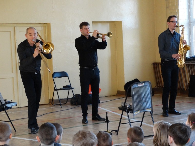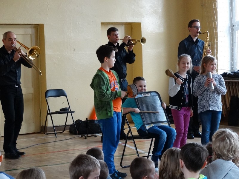 25 lutego 2016r. zespół z Łodzi Dixieland Trio „Srebrna Tarka” zabrał uczniów i nauczycieli naszej szkoły w cudowną podróż w MUZYCZNY ŚWIAT DIXIELANDU. Dla najmłodszych słuchaczy (klasy I-III) przygotowano wspaniałą wyprawę w krainę baśni Walta Disneya. Muzycy zaprezentowali znane melodie z ulubionych bajek: Król Lew, Piękna i Bestia, Księga dżungli, Alladyn. Starsi uczniowie (klasy IV-VI) przenieśli się do Ameryki końca XIX wieku ,do Luizjany, do Nowego Orleanu, a mianowicie do kolebki jazzu tradycyjnego -zwanego dixielandem. Młodzież poznała korzenie muzyki rozrywkowej, czyli historię jazzu tradycyjnego oraz wysłuchała najbardziej znanych utworów tego stylu muzycznego takich jak: ragtime „ENTERTAINER”, Scotta Joplina „ ALEXANDER S RAGTIME BAND”, „HELLO DOLLY” i wiele, wiele innych. Podczas koncertów uczniowie zostali zaproszeni do wspólnego muzykowania, mogli klaskać i tańczyć albo spróbować swoich sił w grze na puzonie. Najbardziej aktywnych nagrodzono mini-nagrodami. Wszystko to stworzyło niezapomniany klimat i atmosferę dobrej zabawy. Koncert ten pozostanie na długo w pamięci uczniów i nauczycieli naszej szkoły.