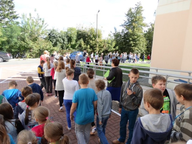 30 września br. w naszej szkole odbyła się próbna ewakuacja. Głównym celem przeprowadzonych ćwiczeń było zapoznanie uczniów i pracowników szkoły z praktycznym zastosowaniem procedur dotyczących zachowania się w przypadku wybuchu pożaru lub powstania innego zagrożenia dla życia i zdrowia. Ewakuacja polega na szybkim i zorganizowanym przemieszczaniu ludności z miejsc, w których przebywanie może zagrażać życiu lub zdrowiu, do rejonów bezpiecznych. Za przygotowanie planów ewakuacji i jej prowadzenie odpowiada dyrektor placówki oświatowej a osobą odpowiedzialną za przeprowadzenie ewakuacji jest wyznaczona przez dyrektora szkoły osoba, w tym przypadku była to p. Barbara Jaroszkiewicz.