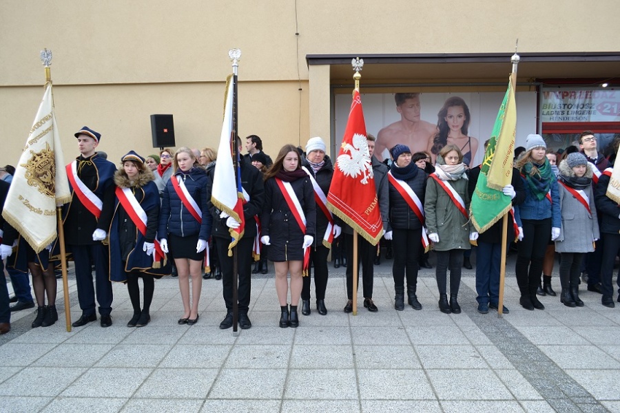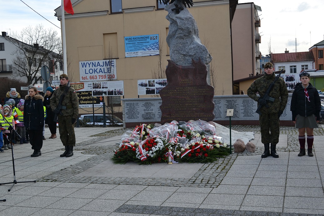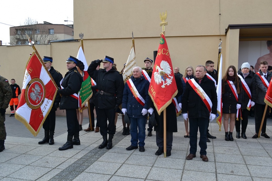 Uroczystości rozpoczęły się pod pomnikiem poświęconym pamięci Żołnierzy Wyklętych „Ziemi Ostrowskiej”, który został odsłonięty w listopadzie 2015 roku. Na cześć Bohaterów odczytano Niepodległościowy Apel Pamięci, wykonano salwę honorową, złożono także kwiaty pod pomnikiem.