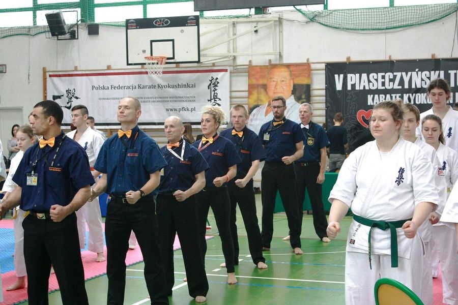 20 marca odbył się V Piaseczyński Turniej Karate Kyokushin. W turnieju wzięła udział również duża drużyna z Ostrowskiego Klubu Karate Kyokushinkai. Tym razem w większości byli to zawodnicy z mniejszym doświadczeniem turniejowym, którzy pojechali do Piaseczna po naukę i nowe umiejętności. Bardzo dobrze piaseczyński sprawdzian przeszli młodsi zawodnicy mimo, że nie stanęli na podium. Wygrali swoje pierwsze walki , lub doprowadzili do dogrywki w pierwszych walkach. Mimo przegranych pojedynków były to walki bardzo wyrównane i tym bardziej wartościowe, że walczyli z bardzo dobrymi, doświadczonymi zawodnikami. Wystartowało również kilku zawodników bardziej doświadczonych. Ewa Zarzycka, juniorka zajęła 3 miejsce, Jan Bilwin uplasował się tuż za podium na 4 miejscu w kategorii młodzików, w kategorii dzieci młodszych Nicola Toczyska i Zuzanna Pasek zajęły odpowiednio 1 i 2 miejsce spotykając się w tej kategorii w finale. Bardzo skuteczny okazał się Igor Zająć, który w kategorii dzieci młodszych doszedł do finału i ostatecznie wywalczył 2 miejsce. Z uwagi na bardzo dużą frekwencje i licznie obsadzone kategorie turniej stał na bardzo dobrym poziomie sportowym. Również organizacja zawodów była bardzo dobra. Ostrowski Klub Karate Kyokushinkai reprezentowali: Ewa Zarzycka, Wiktoria Pędzich, Zofia Niebrzegowska, Ewa Pasek, Filip Pasek, Zuzanna Pasek, Aleksander Cydejko, Nicola Toczyska, Amelia Pełszyńska, Wiktor Pencak, Julia Parafińska, Jan Bilwin, Igor Zająć. Zawody odbyły się z udziałem 392 zawodników z 32 klubów. Organizatorem był sensei Krzysztof Markowski – Bushi Team, a sędzią głównym shihan Jan Gruba 5 dan. Pierwsze miejsce z klasyfikacji drużynowej zajął KSW Bushi, drugie Bushi Team, a trzecie Olsztyński KKK. Podczas tych zawodów sensei Maria Jasko zdobywała szlify jako sędzia a drużyną opiekował się sempai Albert Żbik.(OKKK)