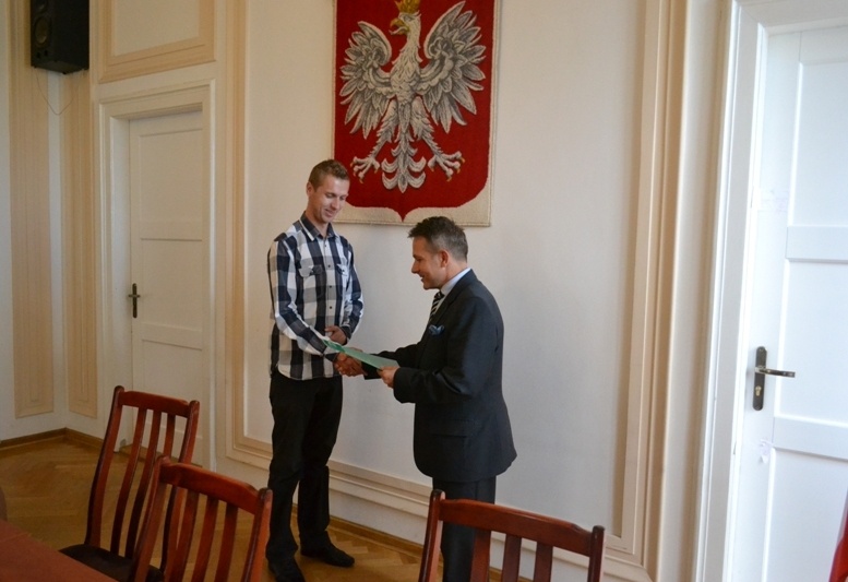 Burmistrz Jerzy Bauer wraz z Dorotą Ambroziak Naczelnik Wydziału Edukacji, Zdrowia, Spraw Społecznych, Kultury i Sportu, wręczył akty nadania: