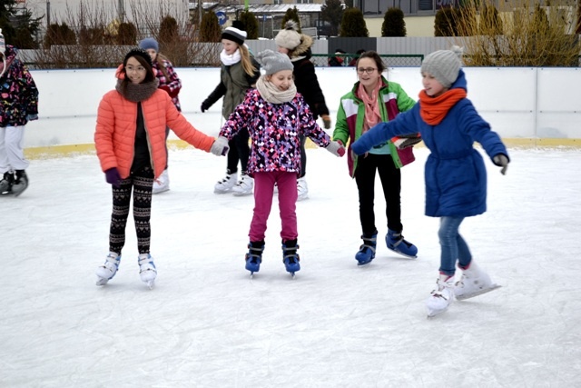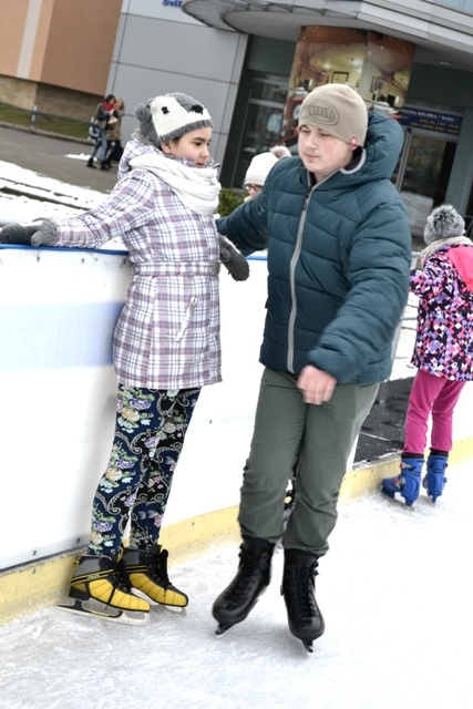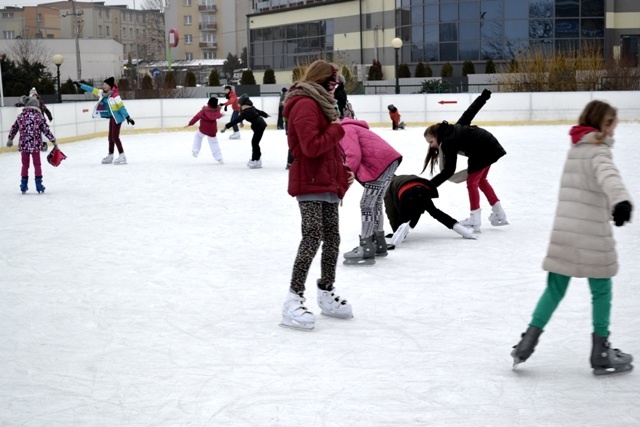 Czwarty dzień ferii upłynął pod znakiem rywalizacji sportowej na lodowisku w Zambrowie.Taką atrakcję zapewniło uczniom miasto Ostrów Mazowiecka dwie grupy 50 osobowe młodzieży ze szkoły podstawowej i gimnazjum mogły wypożyczyć łyżwy i pod okiem swoich opiekunów uczyć się jazdy lub doskonalić już nabytą umiejętność. Na początku niektórzy częściej wywracali się niż jeździli po tafli lodowiska. Jednak z każdą minutą było coraz lepiej. Pod koniec pobytu na lodowisku wszyscy potrafili już pięknie jeździć. Pojawiło się nawet współzawodnictwo wśród szkół i popisy na lodzie. Wyjazd był bardzo udany, wszystkim dopisywały świetne humory. Był to wspaniały dzień relaksu podczas dni wolnych od nauki.