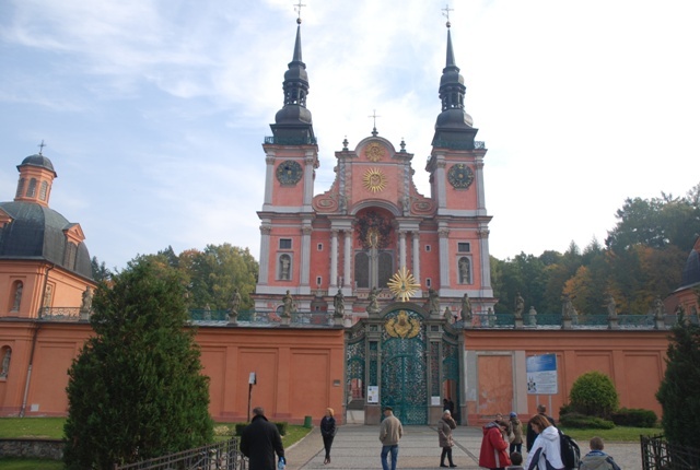 W taką pobożność maryjną wpisuje się też pielgrzymowanie do Jej miejsc królowania i bytowania. W przeróżnych wizerunkach Ją dostrzegamy, w wielu odsłonach Ją podziwiamy i chętnie do Niej zdążamy. Tym razem grupa ponad trzydziestu osób z parafii Chrystusa Dobrego Pasterza udała się na spotkanie z Panią ziemi Warmińskiej, w św. Lipce. Wczesnym rankiem 17 października, zaraz po parafialnej mszy św. z godziny 6.30, wsiedliśmy do autokaru i z modlitwą na ustach, śpiewem w sercu oraz duchem maryjnym udaliśmy się w gościnę do Niej. Po prawie trzech godzinach jazdy ukazało się naszym oczom przepiękne sanktuarium na lekkim wzniesieniu i w otoczeniu leśnym mieniącym się w słońcu wielością jesiennych barw. Żółcie, czerwienie, pomarańcze, brązy czy przyszarzałe zielenie dawały niesamowite doznanie estetyczne, na tle których świątynia stawała się miejscem iście królewskim. Można było się domyślać, że mieszka tu ktoś wyjątkowy. Od razu weszliśmy w gościnne progi przepięknej barokowej świątyni i w pierwsze pędy udaliśmy się przed Jej wizerunek w głównym ołtarzu, aby się Jej pokłonić i rzec, że jesteśmy, czuwamy i pamiętamy.